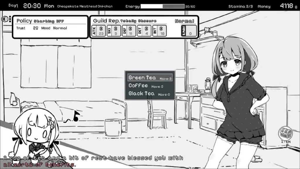 The magicāand challengeāof Living With Sister Monochrome Fantasy gameplay unfolds in its daily cycle. Each day gives you a set amount of energy to split between two worlds: the public life of an adventurer and the private life of a brother.